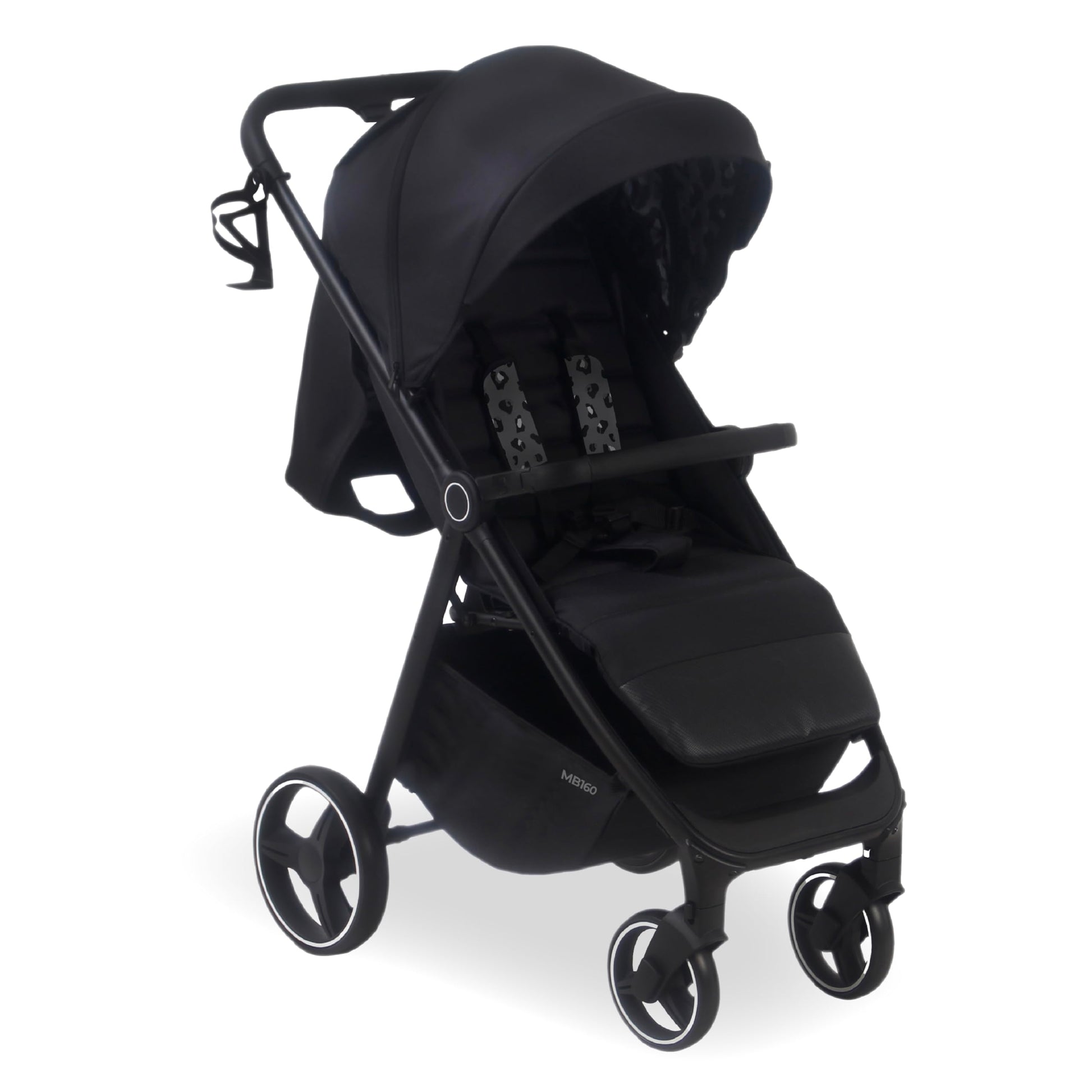 My Babiie MB160 Pushchair – from Birth to 4 Years (22kg), 4-Wheel Suspension, Large Basket, XL Canopy, Foldable, Compact, Stroller with Footmuff, Cup Holder, Rain Cover – Black Leopard