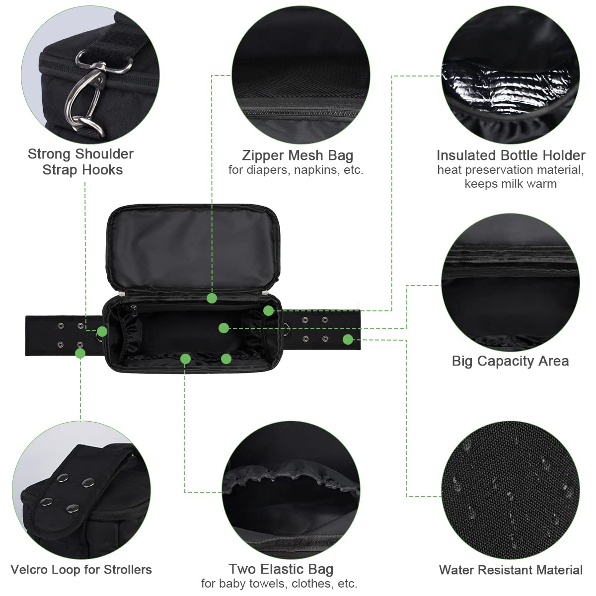 - 【2 insulated cup holders·zipper-closing top】 With zipper closure and insulated cup holders, the pram organiser bag can help your baby to drink warm and fresh milk, water at any time. The zipper cover protects your valuables and keeps food away from dust or rain.