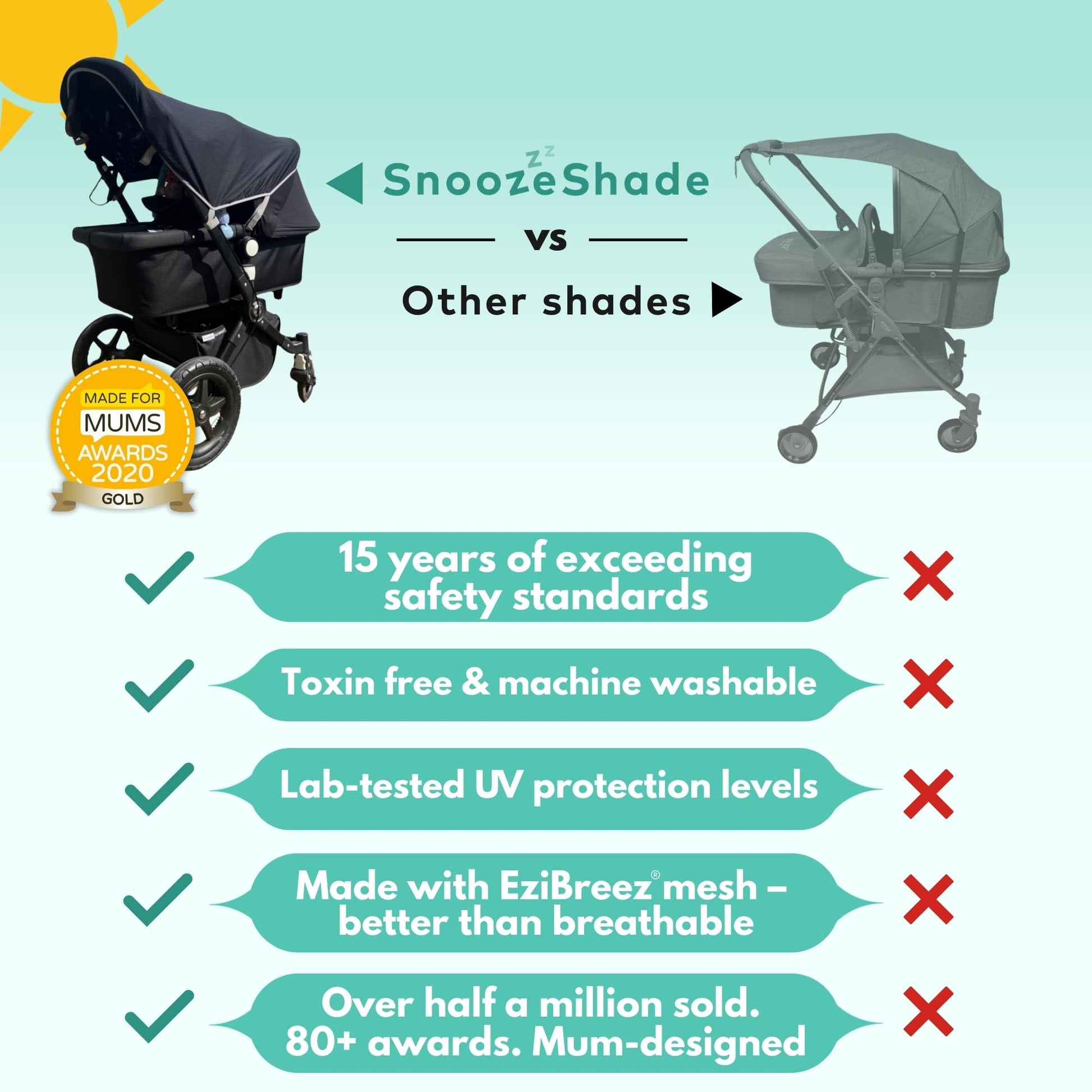 - Shields from more than just sun: Also protects your baby from wind, light rain, bugs and even curious pets. A must-have for holidays, walks, shopping trips and everyday outings.